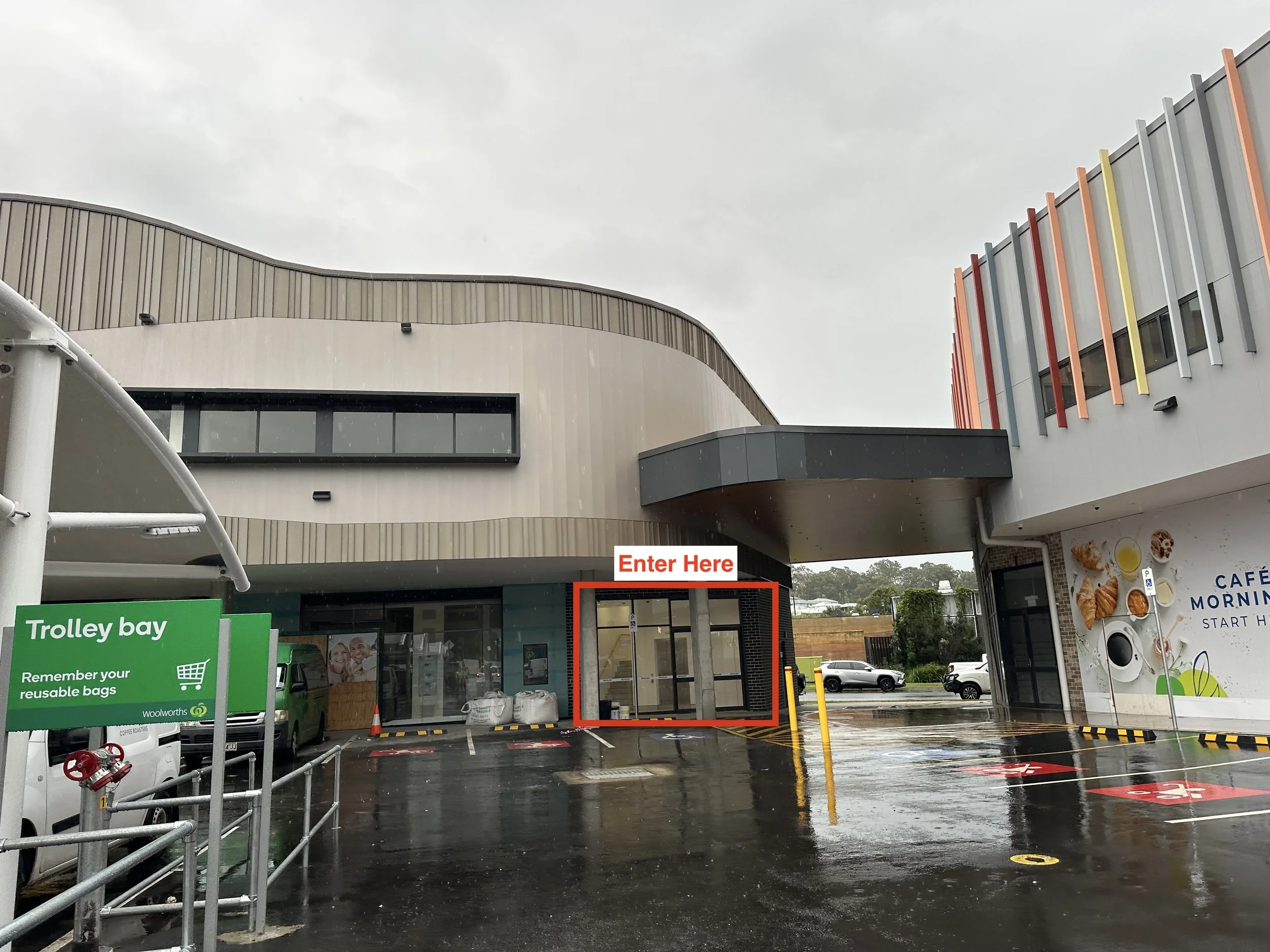 We’re located upstairs inside the medical centre building — directly above the dentist, facing north over The Plough & Ale.